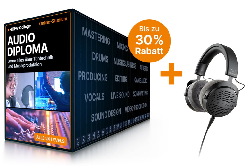 Beim Fernkurs AUDIO DIPLOMA bekommst du jetzt bis zu 30 % Rabatt. Außerdem schenken wir dir: