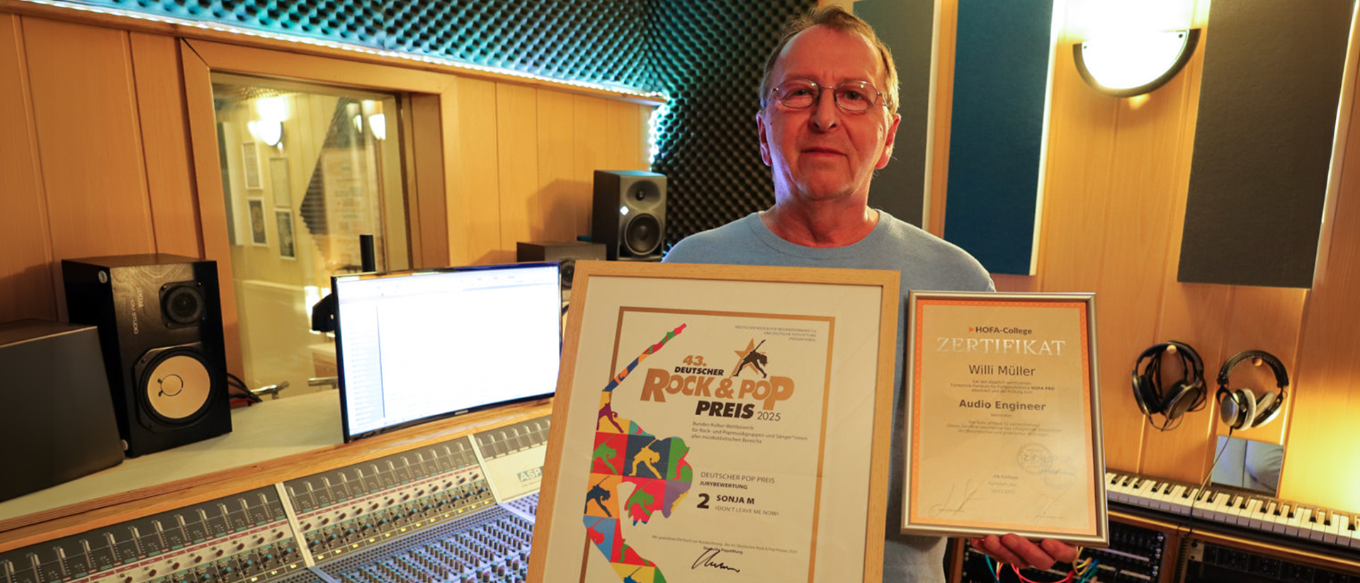 Willi Müller hat nach Abschluss seiner Tontechnik-Weiterbildung den Deutschen Rock & Pop Preis gewonnen. Im Interview erzählt er von seinen Erfahrungen und wie ihm die HOFA Fernkurse geholfen haben, Musik auf Profi-Niveau zu produzieren.