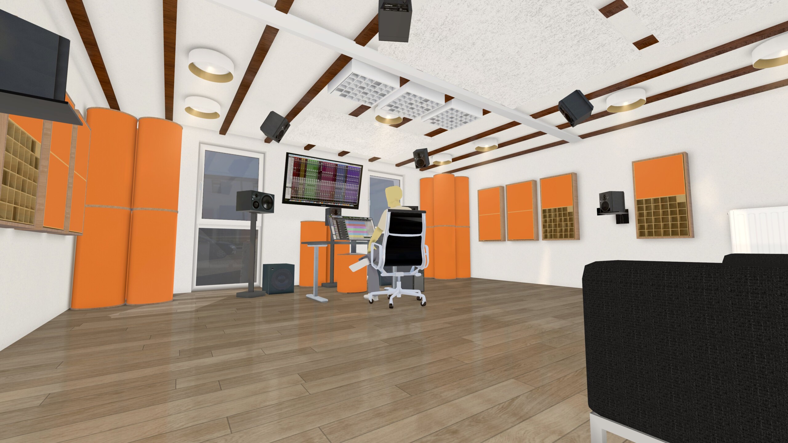 Alle Absorber, Basstraps und Diffusoren kommen selbstverständlich von HOFA-Akustik 😉
