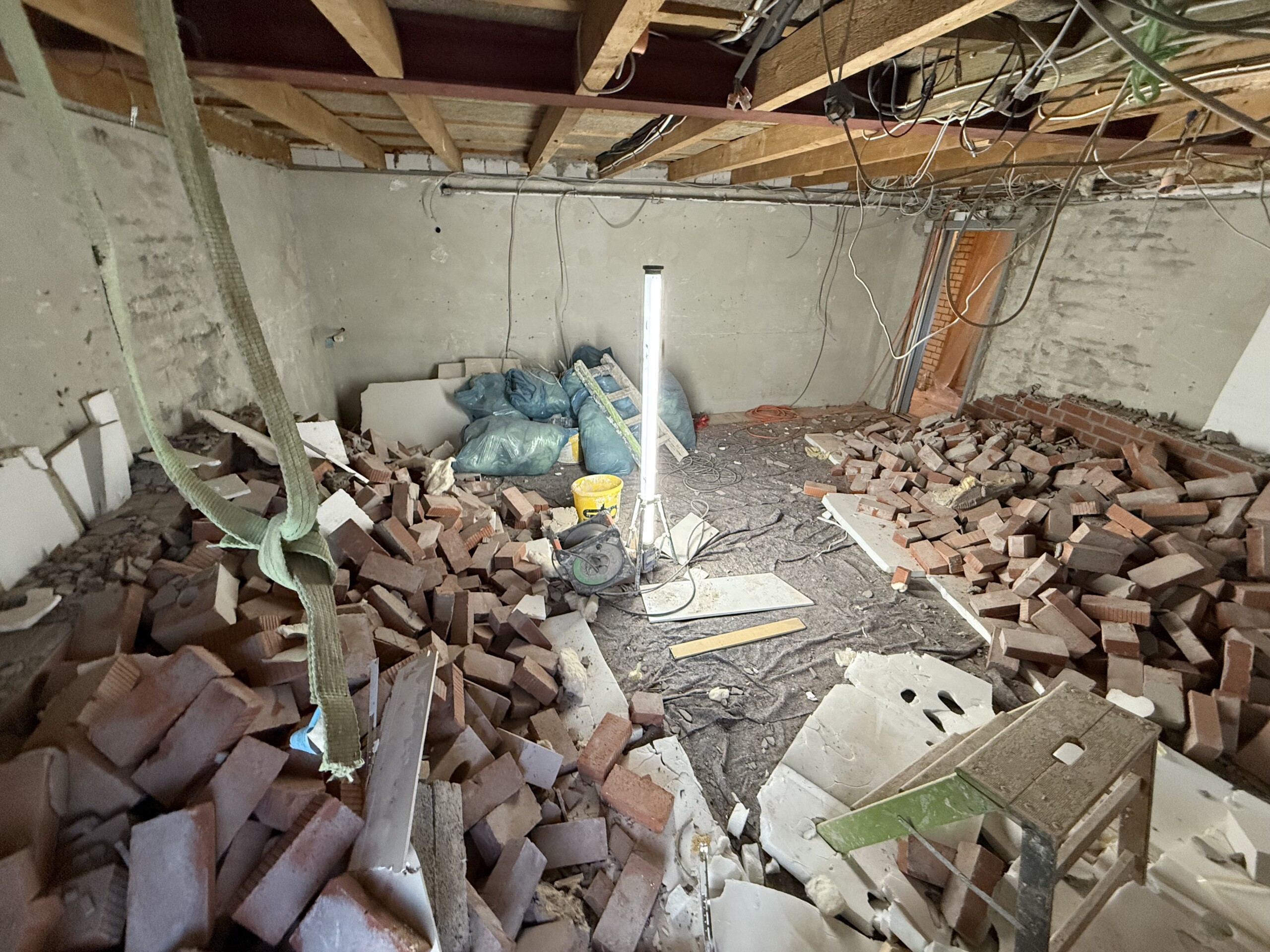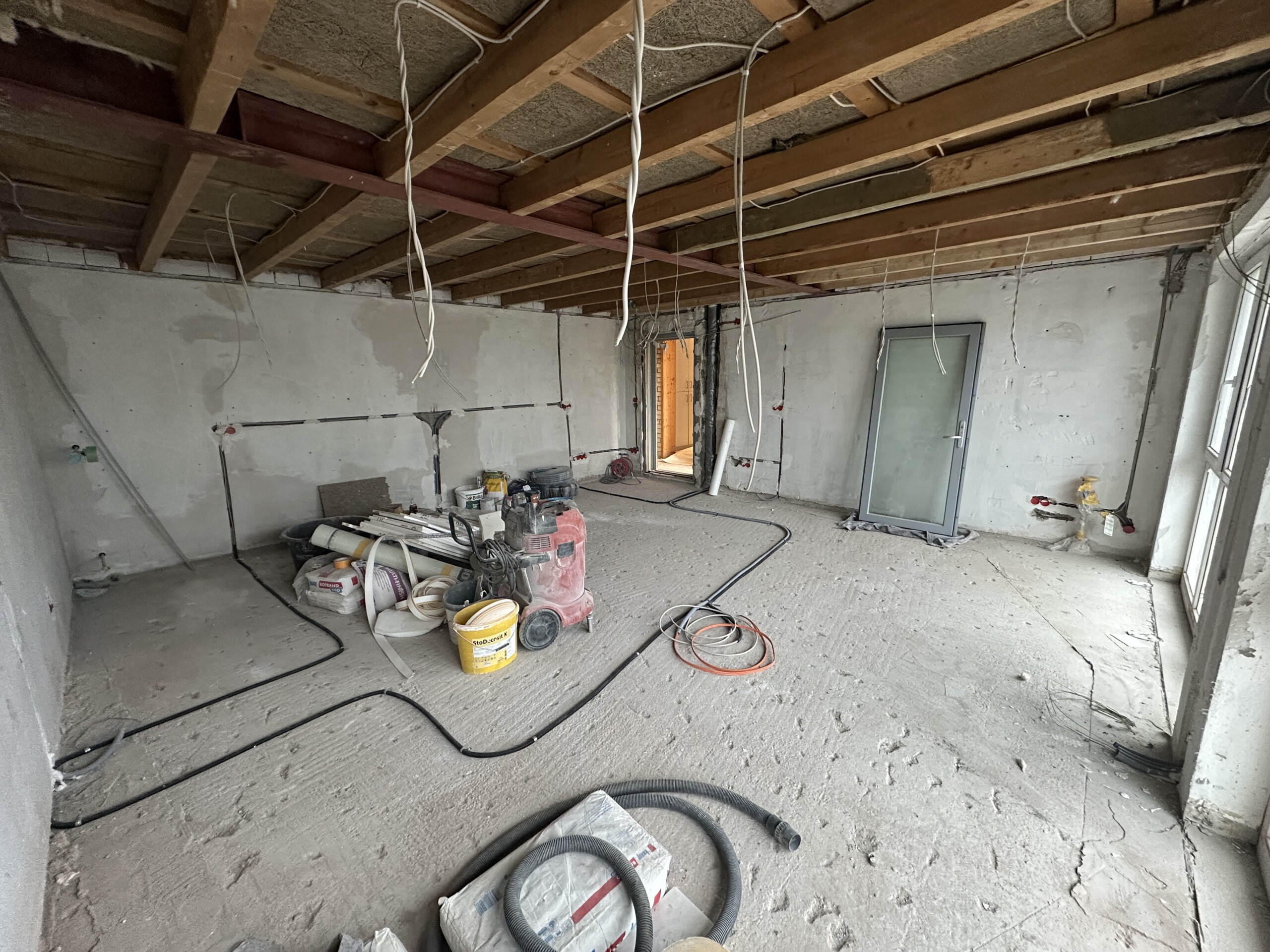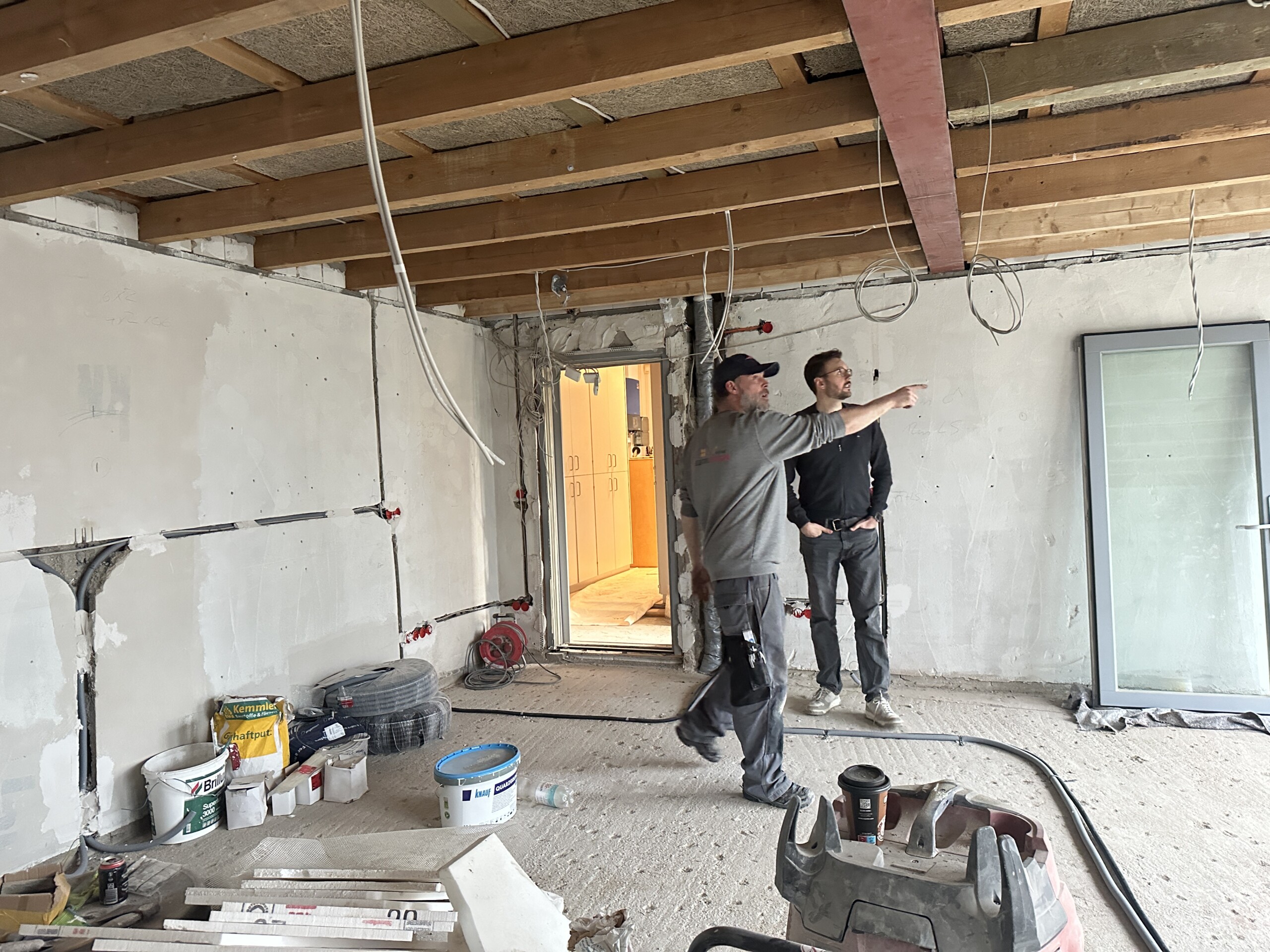 Inzwischen werden die Leitungswege geplant und umgesetzt. Dazu gehört die Positionierung der Steckdosen, das Verlegen der ersten Kabel sowie die Vorbereitung der technischen Infrastruktur. Dabei ist vorgesehen, dass Lautsprecher und alle anderen Verbraucher über getrennte Stromkreise verfügen.
