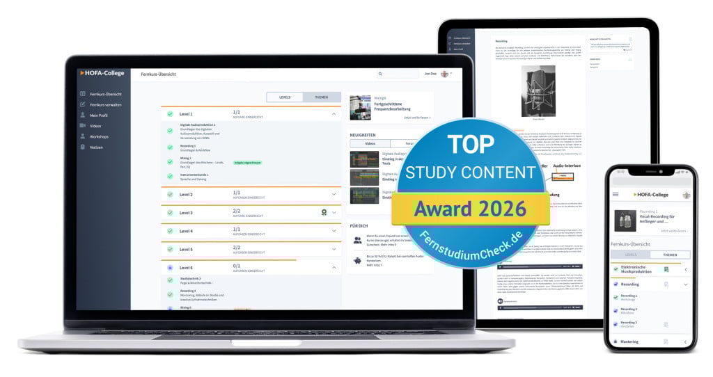 The HOFA AUDIO DIPLOMA is evaluated and certified by the German State Central Office for Distance Learning “ZFU”. This certifies meaningful didactics, an educationally meaningful course structure and fair contractual conditions.